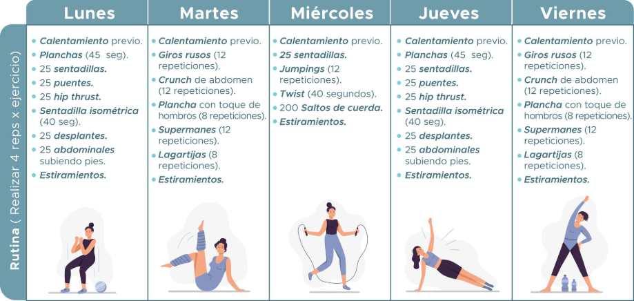 Por ello te damos ideas de rutinas para ejercitarte en casa: